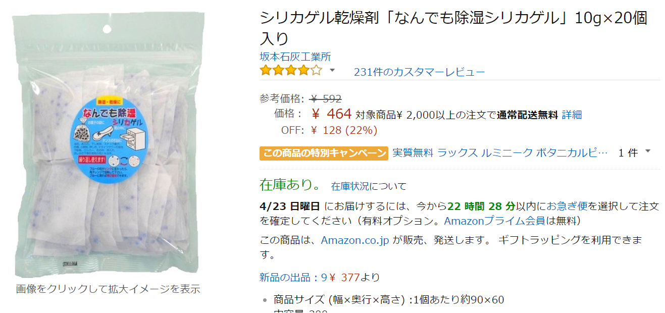 箱や袋の中に入れればその中の湿度を吸収してくれます。